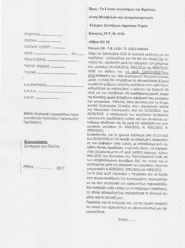 Όσοι από τους πολιτικούς Συνταξιούχους έχουν κάνει την αίτηση προς το ΓΛΚ και πήραν απάντηση και ενδιαφέρονται να συνεχίσουν την απαίτησή τους μπορούν μα προμηθευτούν την ΕΝΣΤΑΣΗ από τα κατά τόπους γραφεία μας (Γραφεία των Συνδέσμων μας).